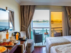 Embark on an unforgettable journey aboard the Sonesta Moon Goddess, a 5-star luxury Nile cruise ship offering an elegant blend of comfort and cultural immersion. With 49 spacious cabins and 4 Presidential Suites, each featuring private balconies and full-size bathtubs, guests enjoy panoramic views of the Nile in refined style. Onboard amenities include a sun deck with a swimming pool and bar, a fitness center, spa services, and nightly entertainment. Savor diverse culinary delights in the main dining room or unwind in the lounge. Guided excursions to iconic sites like Karnak Temple and the Valley of the Kings enrich your experience, making the Sonesta Moon Goddess the perfect vessel for exploring Egypt’s timeless treasures.